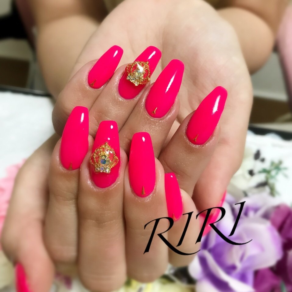 スカルプ乗せ放題 蛍光ピンクワンカラーで派手派手ネイル 凄く可愛いです ゚ ゚ 今 Nail S Relum所属 Nail S Relumのネイル デザイン ミニモ