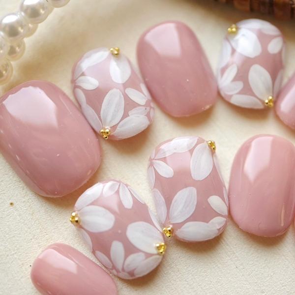 ネイルチップ ピンクベージュフラワーペイントシンプルアート 大人女子 サイズオーダー ショート つけ爪 デザインサイズオーダー ハンドメイド 44 Dinaネイル 通販 Yahoo ショッピング